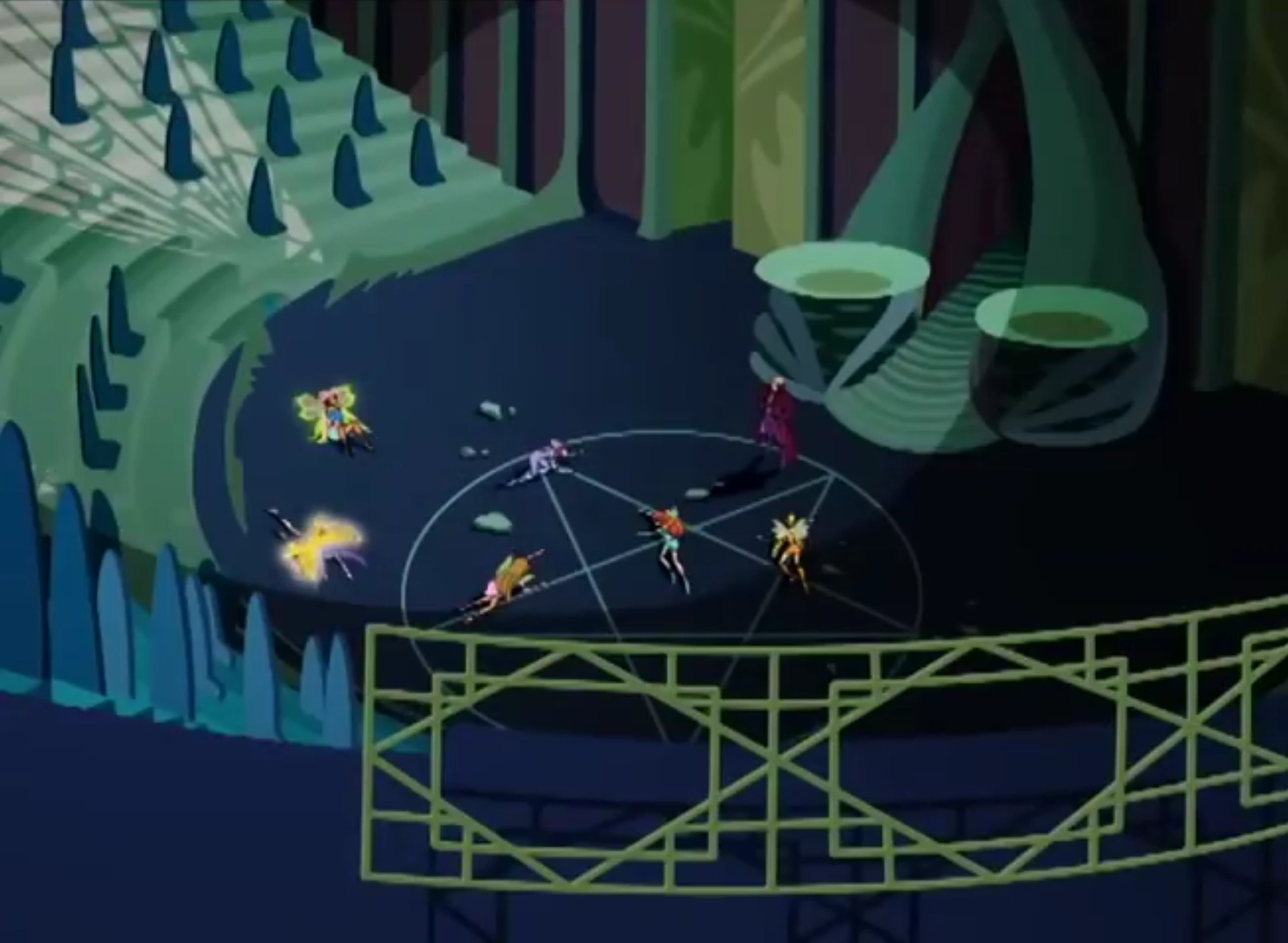 В классе Винкс и ведьмы выполняют упражнение — вызывают негативную сферу, созданную с помощью тёмных чувств и эмоций. Гриффин ходит по классу, критикуя своих студенток. У некоторых ведьм заклинание не удалось, а Муза справляется с ним довольно хорошо к большому удивлению Гриффин, и, как обычно, Стелла подшучивает, превращая свою негативную сферу в светлую. Блум, с другой стороны, устала от выполнения заклинания, что подмечает Гриффин, поскольку феям нелегко колдовать с помощью негативных чувств.[4]