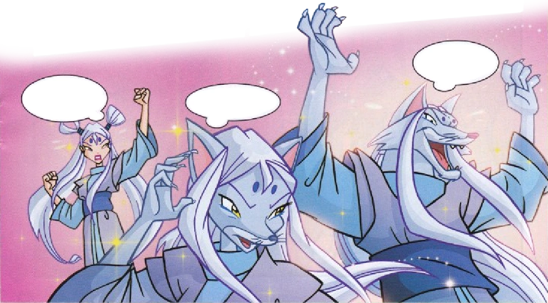 Вдруг Серебряная лиса почувствовала, что её магические силы иссякли, и она превратилась в человека. Появившаяся позади Яко рассмеялась и поблагодарила фей за помощь.