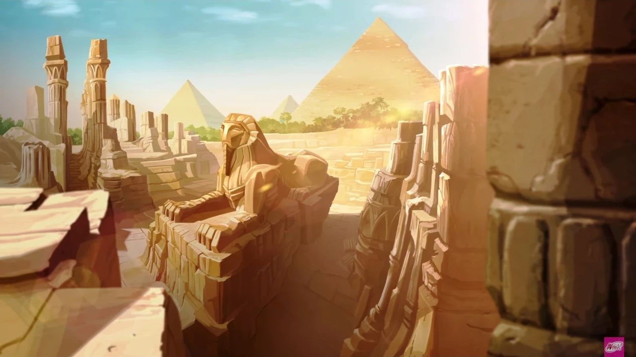 Винкс, Дафна, пикси и замаскировавшиеся под фей-учениц ведьмы Трикс, отправились в Египет в поисках дневника феи-крёстной Элдоры. За время своих поисков они посетили развалины античной Александрии и современный город, затерянную александрийскую библиотеку и столкнулись с ожившей, благодаря ведьме Селине и книге Легендариум, статуей Большогосфинкса.[1]