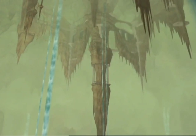 Узкая подземная башня с неровными каменными стенами. Она возвышалась на сотни футов в сердце огромной каменной пещеры, почти скрытая массивными сталактитами, свисающими с потолка. На её вершине возвышался небольшой замок, вырезанный в искривлённой скале. Со всех сторон гигантские водопады низвергались с потолка в озеро глубоко внизу на дне пещеры, что простиралась вокруг замка. Узкий мост соединял замок с отдалённой точкой на другой стороне пещеры.