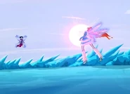 Вместе с командой мстительниц, а впоследствии и без них, сражалась с магами Черного Круга, а так же Винкс, Рокси и Морганой, желавшими им помешать. Заперла Моргану в зеркале..