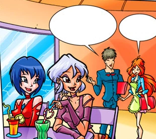Заверив Адриана, что все в порядке, Блум спрашивает, как проходит его первый рабочий день. Адриан говорит ей, что все шло хорошо, но пара ведьм, Нимерия и Пульсатилла, заказывали много разных блюд по очереди, что заставляло его совершать сотни походов к их столу и обратно. Затем Блум улыбается и говорит Адриану, что они делают это, потому что он им нравится как парень, и они хотят держать его рядом как можно дольше.