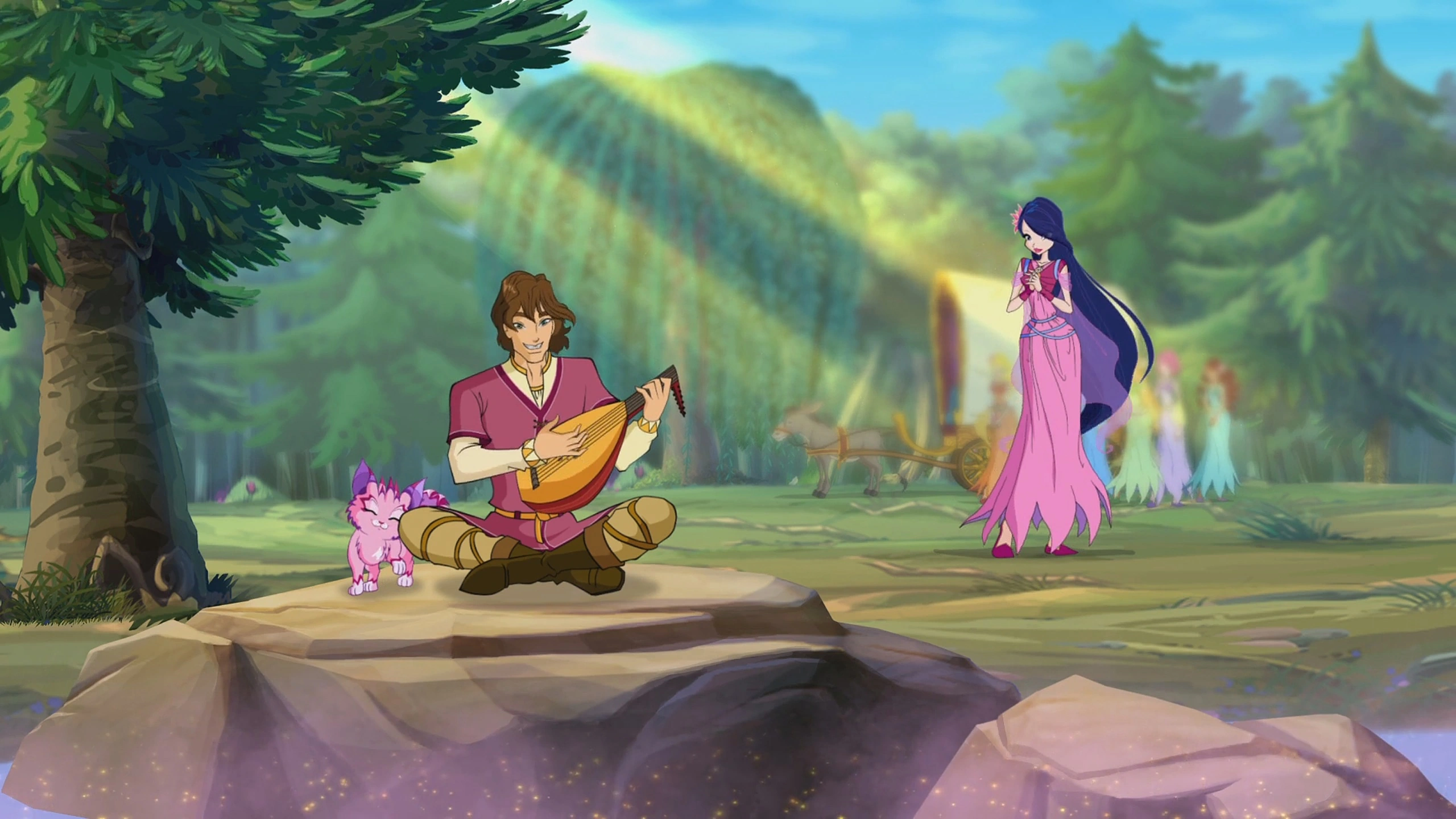 Впервые появляется в 8 серии 7 сезона. Вместе со своим театром он кочует от селения к селению, где «Радуга» устраивает свои представления. Знаком с игольчатой кошкой Критти, которой нравится его игра на лютне. Именно он помог Винкс найти игольчатую кошку.