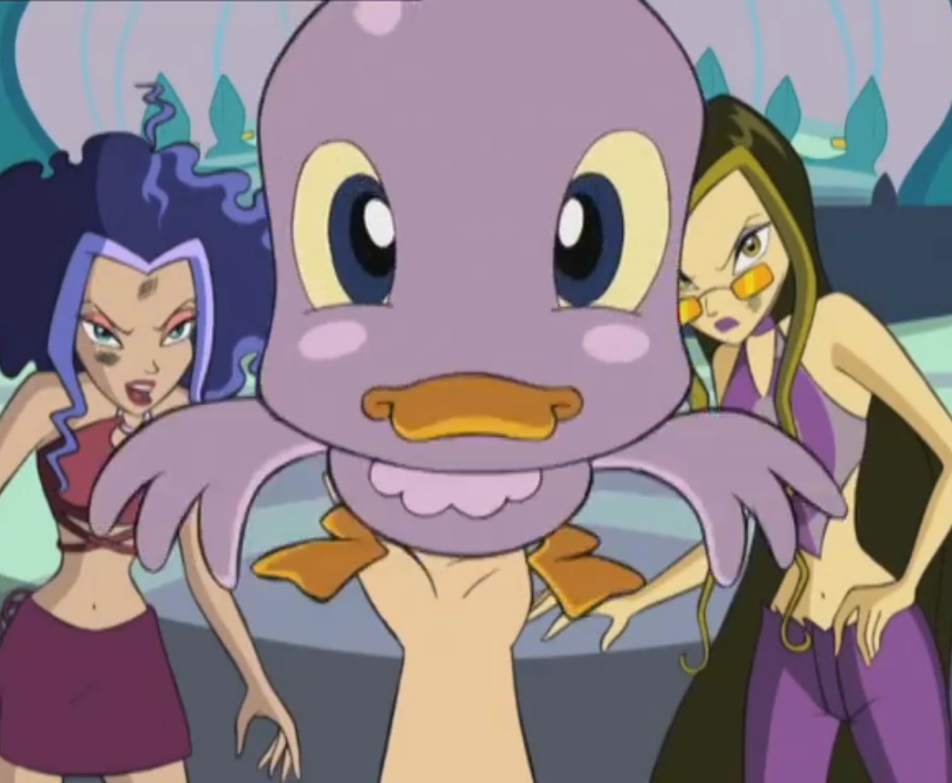 Чтобы насолить феям, Трикс превратили яйца с бабочками в яйца змеекрыс. Однако Винкс расколдовали подарок специалистов. Для безопасности кольца Стеллы, которое Айси хотела украсть, Флора поменяла местами яйцо и кольцо, и теперь кольцо было в безопасности, а внутри украденной шкатулки лежало яйцо. Открыв его, вместо кольца или бабочек ведьма льда обнаружила утёнка, с первого взгляда полюбившего её и назвавшего мамой.[1]