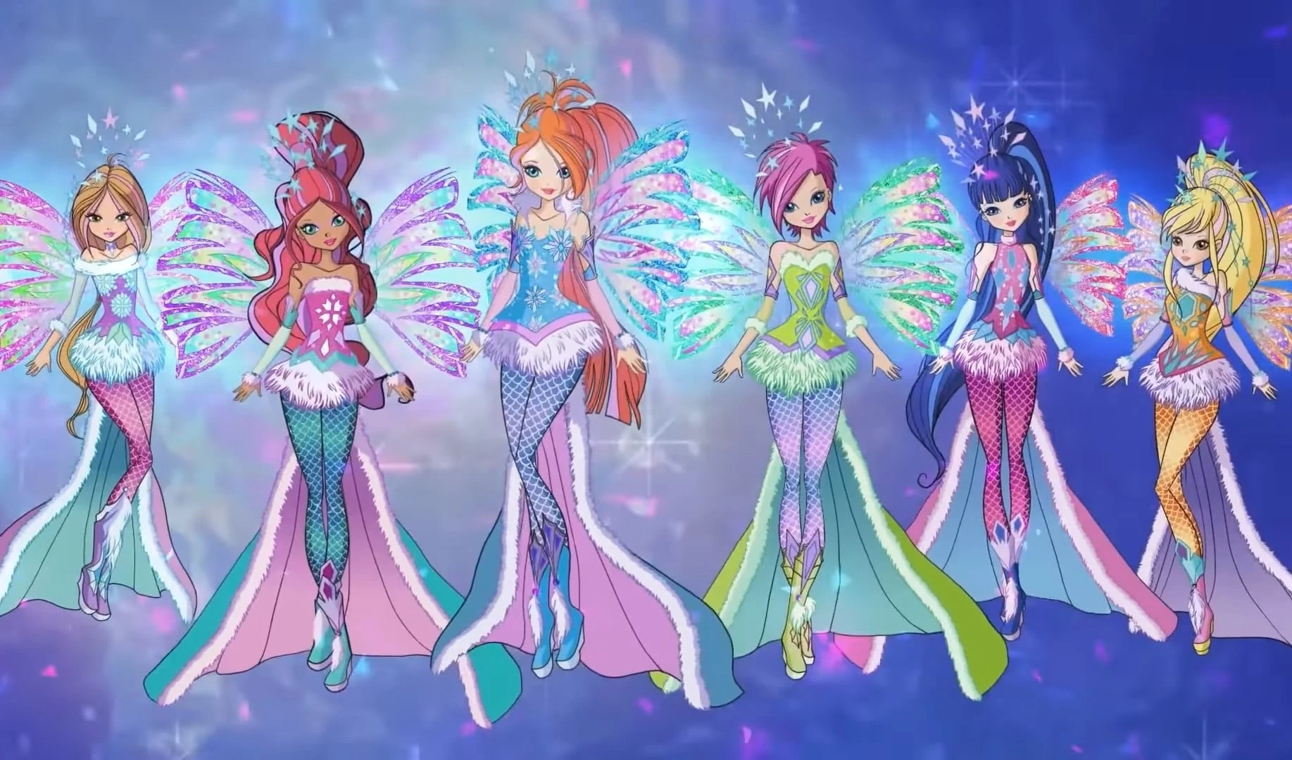 Костюм сохраняет причёски и крылья Сиреникса, а также в трансформации присутствуют характерные плотные лосины, теперь с узором в сеточку. В волосах появляются некие короны, состоящие из кристаллов и льда. Топ также обрамлён ими, составляя узоры снежинок. Кроме того на нём присутствуют меховые вставки, а заканчивается он юбкой из меха. Появляется также длинный шлейф, обрамлённый мехом. Обувь перестаёт быть единым целым с лосинами, утеплена и появляется платформа. Руки фей закрыты перчатками или рукавами.