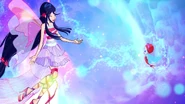 С помощью ее арфоподобного символа на лбу она может стрелять фиолетовыми ударами энергии, закрывать и открывать портал Мелодии и входить в Бесконечный океан.