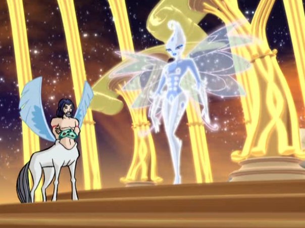 Русалка слышала о том, что собирается совет старейшин, и крылатый кентавр подтвердил, что всё это ради этих Винкс. Летающее существо желает закончить с этим делом поскорее. И последней перед девушками появляется фея Золотого королевства, Аркадия. Она призывает фей выбрать, кто будет излагать перед советом их прошение, и феи смотрят на Стеллу. Принцесса Солярии рассказывает старейшинам о том, что они участвуют в большой битве с Валтором, о котором старейшины уже наслышаны. Поскольку силы Валтора происходят из огня Дракона, как и силы Блум, феи подумали, что могут взять Водные звёзды, одолеть Валтора и спасти Волшебное измерение. Если этого не сделать, что колдун вместе с Трикс захватят измерение и кто знает, что тогда будет.