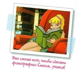 Муза часто говорит Стелле, что она проводит больше времени перед зеркалом, чем над учебниками магии. Это правда, но если надо изучать зелья, сохраняющие красоту, или любовные напитки, тогда это совсем другое дело. В таких случаях Стеллу от книг не оттащишь.[10]