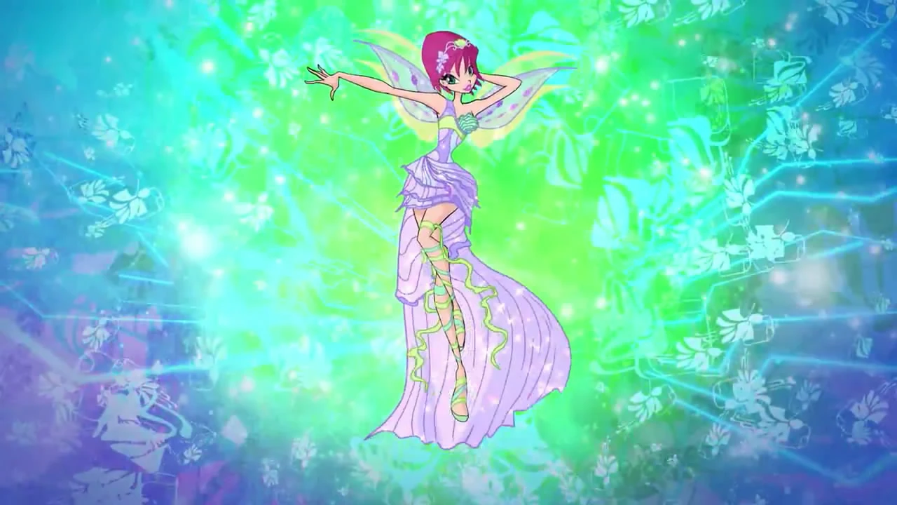 В Энчантиксе на Текне появляются сиреневый купальник с шортами, сиреневые шорты и топ, соединённые ромбовидными сиренево-зелёными украшениями, сходящимися на пупке. Крылья фиолетовые. Ноги обуты в босоножки из ленточек, а на шее зелёный кулон с подвеской. Перчатки голубые. Волосы слегка длиннее, чем в остальных превращениях.