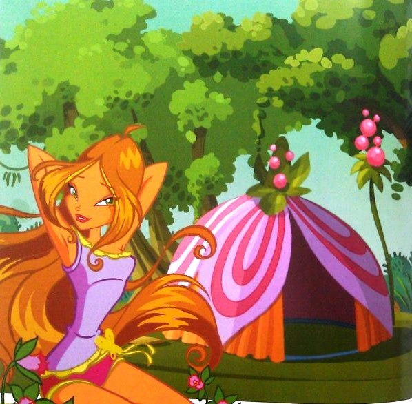 - В гроте с сокровенными желаниями Блум, Стелла, Муза и Текна видят себя со Специалистами, а Флора вообразила высокого мальчика с длинными чёрными волосами (и да, на тот момент она ещё не была знакома с Гелией).[20]